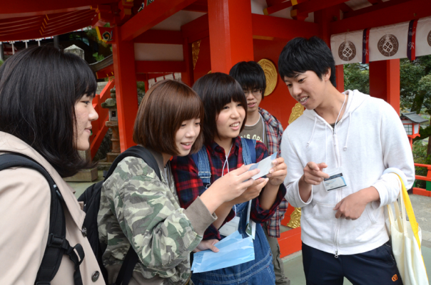 赤い鳥居が描かれたパンフレットを持って、「探偵証」と書かれたネームプレートを下げて町を歩く若者たち。たまに立ち止まって眺めている紙には、暗号が書かれている。この暗号を解いてスマホサイトに入力すれば次の行き先が示されると同時に、津和野町にまつわる様々なストーリーを覗くことができる。